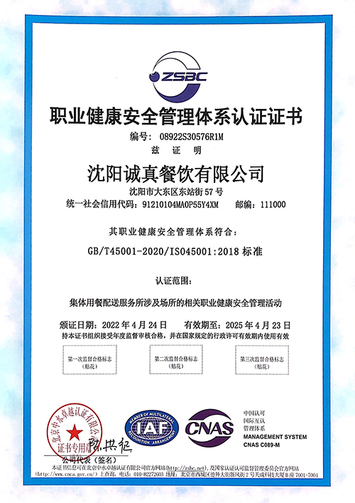 食品安全管理體系認證證書